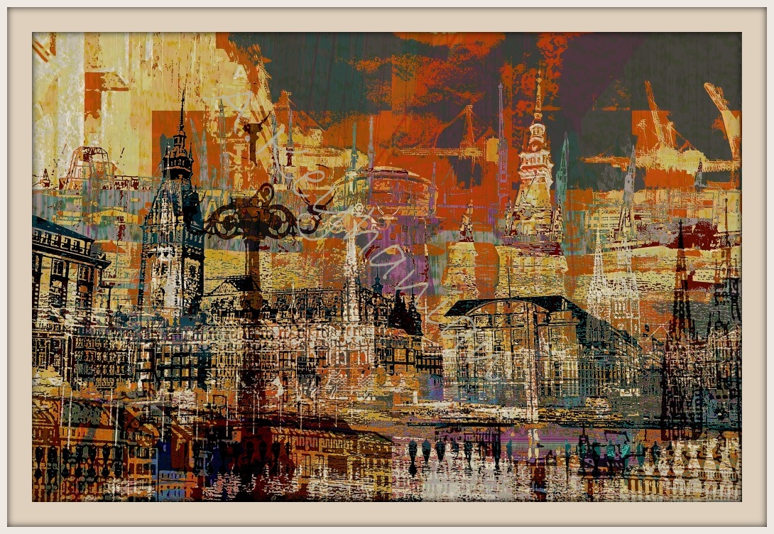 Hamburg Ansichten Hamburg Hafen mischtechnik 140 x 100 cm Öl Auf Pappe Druck auf Lithopapier, Variabel